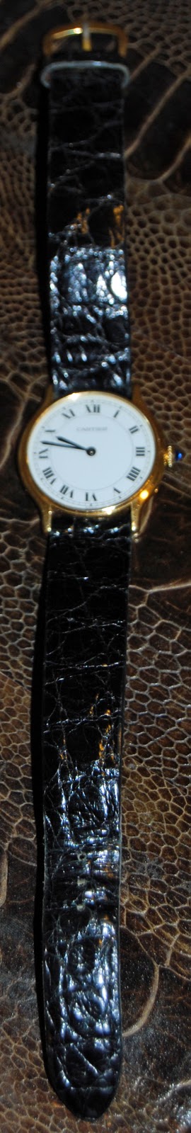 - Cartier 18k gold watch with 18k gold buckle/bespoke alligator band